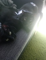 Kaum hatte ich die Leckerlies irgendwo hin gelegt, kam einer der Katern und trug die Tüte mit den Leckerlies in sein "Versteck".