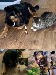 Mein Name ist Nelly und ich bin schon 6 Jahre alt. Die Katze auf dem Bild ist mein Kumpel (wohnt auch bei uns). Ich hatte dieses Jahr schon ein fürchterliches Erlebnis, ich bin in ein Zeckennest getreten. Die waren dann überall am Hals an den Fußballen einfach überall hat es gejuckt. Mein Frauchen hat Anizeck Zeckenschutz über ihre Freundin kennengelernt. Sie trägt es früh an meinen Hals und Hinterläufen auf und das reicht bei mir den ganzen Tag. Außer wir gehen in den Wald dann wiederholt sie die Anwendung bevor es losgeht. Zurzeit ist echt hohes Gras bei uns (Futterwiese) aber es ist keine Zecke in Sicht. Wir nutzen es jetzt ca. 6 Wochen mit Erfolg und sind guter Dinge das uns die kleinen Blutsauger in Zukunft vom Hals bleiben.